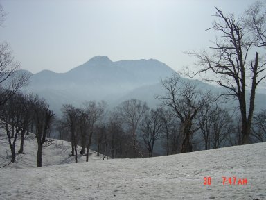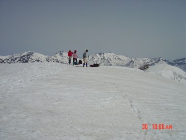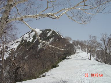 気持ちいいブナ・ダケカンバの雪稜が起伏する