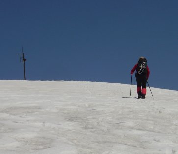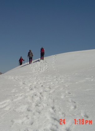 雪原のf初雪山々頂に到着。早朝5時半出発、正午12時の到着だった。 |