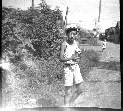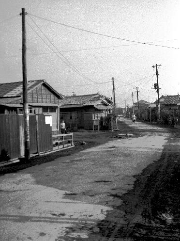 | | 中学時代に写真を写し始めて今も残っているフイルムは24×24ミリでカメラのメ−カ−は判りません。この草むらは六郷用水で女の子が走っている先は目蒲線(多摩川線)の踏切でした。現在は環状8号線になっています。 |