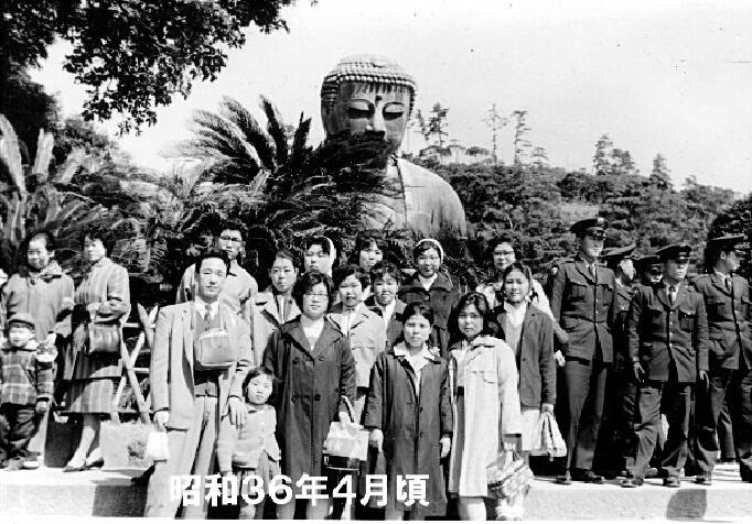 | 左の家族の子供さんからこの時代の服装が少し伝わってきます。 正面の女性達の服装にワタシの様な高齢者には懐かしい思いがする。 現在の服装が50年後の人が見たらどんな風に感じるかナ〜 特に自衛隊員の方の服装が現在みるとスマートでないですネ。 |