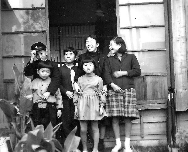 | | 昭和26〜7年頃かな、あの頃はスナップ写真を写すことを生業としていた人が多くいたそうで、多分その人に写してもらったものでしょう。この写真代は幾らかだったのか、お袋に聞いても判らない。パンツ姿が私で全員が下駄です。(昭和30年に後ろの麦畑にやまざきラ-メン店が開店する) |