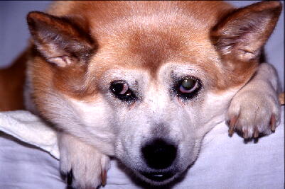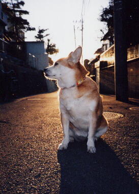 | | 1997年 8月号 日本カメラ CONTAX-TVS 自宅前の道路に寝転んで朝陽がコロの背中に当たっているのをストロボにて写しました。ピカッとするのが嫌いで横を向いています。 |