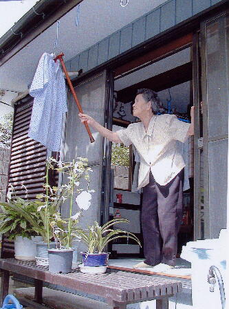 | | 2002年 12月号 日本カメラ お袋です。少々背中が曲がってきた、背も高いほうだけど年とともに小さくなってきた。89歳でが美貌の衰えが気になりあま外出しません。我々夫婦はお袋さんのことをママさんと呼ます。 |