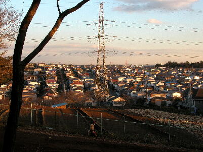 | 2003年5月号 アサヒカメラ ファ−ストステップ部門 予選通過 ニコン ク−ルピクス5700 f5.6 AE 露出補正-0.7 2003.1.25 撮影 自宅から10分程の丘から右奥の森の先が免許更新する二俣川試験場になります。 |