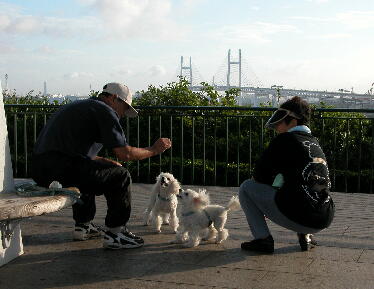 房総半島千倉の花つみの帰りに、菱川美術館の裏がすぐ海なので、夕日が落ちていくのを写しました。沖に船でもあったりしたら最高なんですが! フェリ−の時間が気になりほんの数枚の写真でしたが、かみさんとコロのスナップ。 |