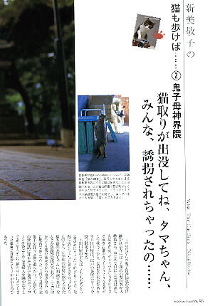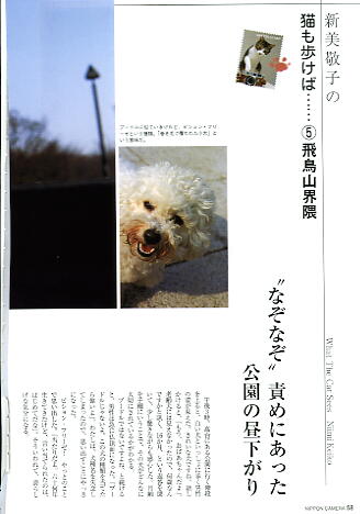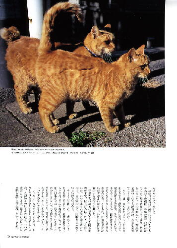 | 日本カメラ 6月号 66頁 日本カメラ 6月号 194頁 インタビュ−記事があります。 『世界の旅ネコ』 『世界の小ネコ』 『世界の小イヌ』 写真集がぴあより出版されましたと掲載されています(ぴあ株式会社) |
