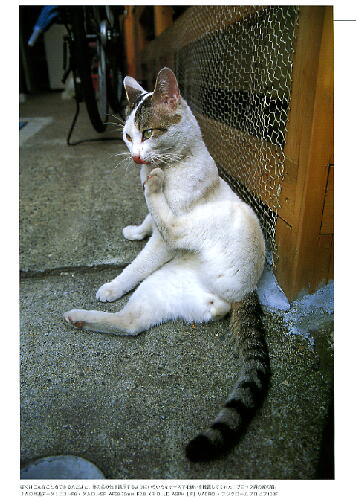 | 日本カメラ 8月号 56頁 町を歩きながら猫と出会うにはコツがいる・・・書きだしを読んでいて、私はどこかへ撮影に行った時、そこに偶然にニャンコがいるので写真を写そうとするから何時も猫の尻尾の写真になってしまうんだと納得した(猫写真を撮影する人は日本カメラ8月号の56頁を熟読) |