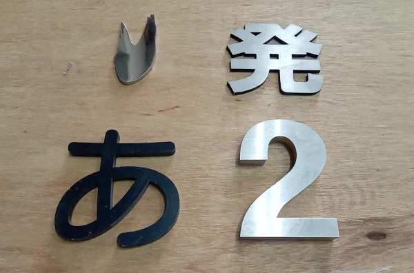 スポンジの表面に樹脂板をはりつけ立体文字です